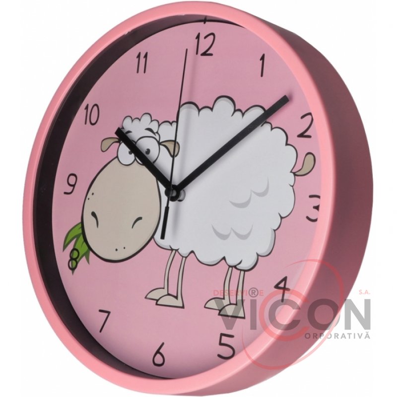 Ceas de perete din plastic Optima LITTLE LAMB, pink
