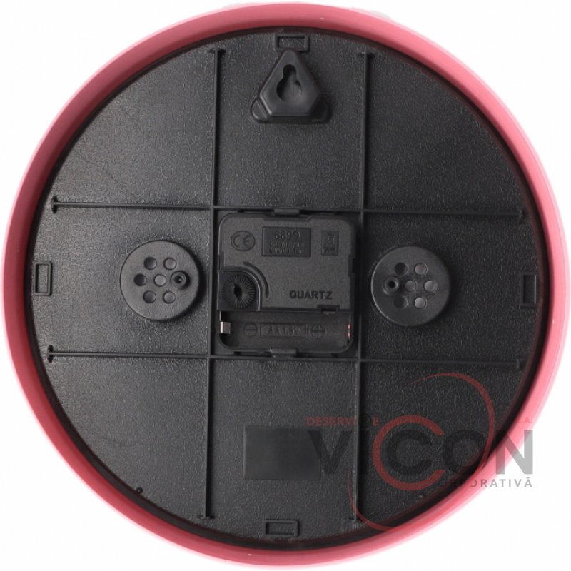 Ceas de perete; Cutie de plastic; cursul este standard; forma rotunda; diametru - 22,5 cm; tip mecanism: cuarț; baterie: baterie AA x 1 buc (bateria nu este inclusă); Datorită mecanismului convenabil, acestea sunt rapid demontate/asamblate.