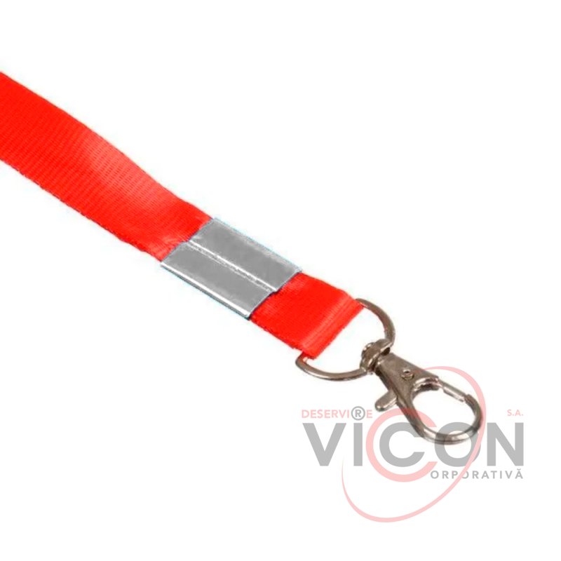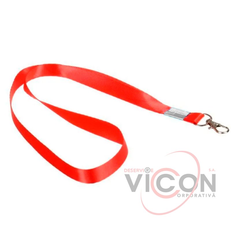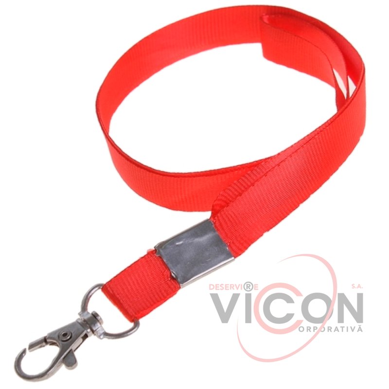 Panglică pentru ecusoane, 15 mm x 42 cm, cu carabină metalică, roșie