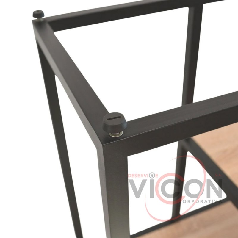 Изготовленная из прочной сварной металлической конструкции, столешница из меламиновой ДСП, окрашенная в электростатическом поле и окантованная, стеллаж имеет 2 открытые полки для хранения товаров и материалов, таких как картриджи, чернила, бумага и канцелярские принадлежности.