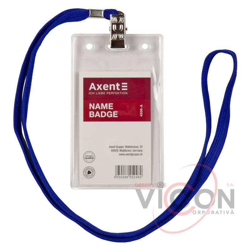 Ecuson Axent 4506-A pe cordelină, confecționat din plastic transparent.