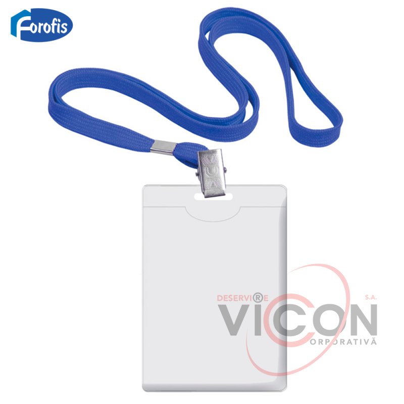 Ecuson de identitate FOROFIS 90x58 mm vertical (plastic), cu panglică albastră (poliester) 42 cm
