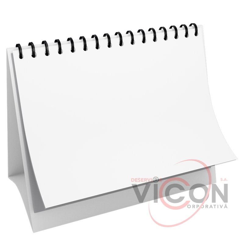 (Dimensiune 210x150 mm, hârtie cretată 170 g/m, tipar 4+4 culori, 6 coli)+ copertă, legare cu arc, suport de carton 250 g/m, îndoire)