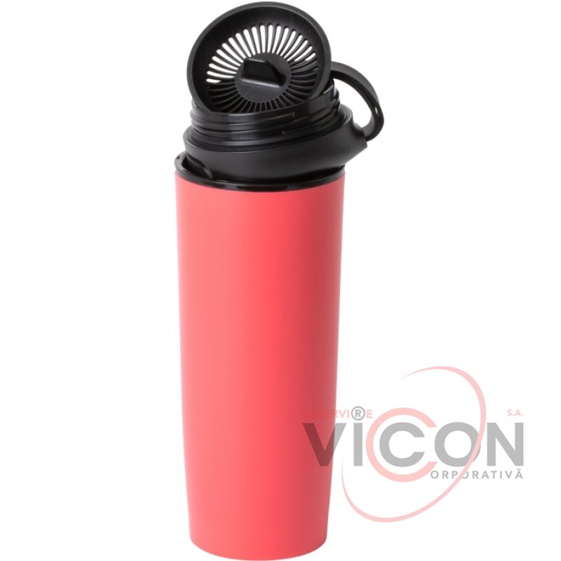 Cană termică din plastic cu ventuză Optima PRIME 540 ml, roșie