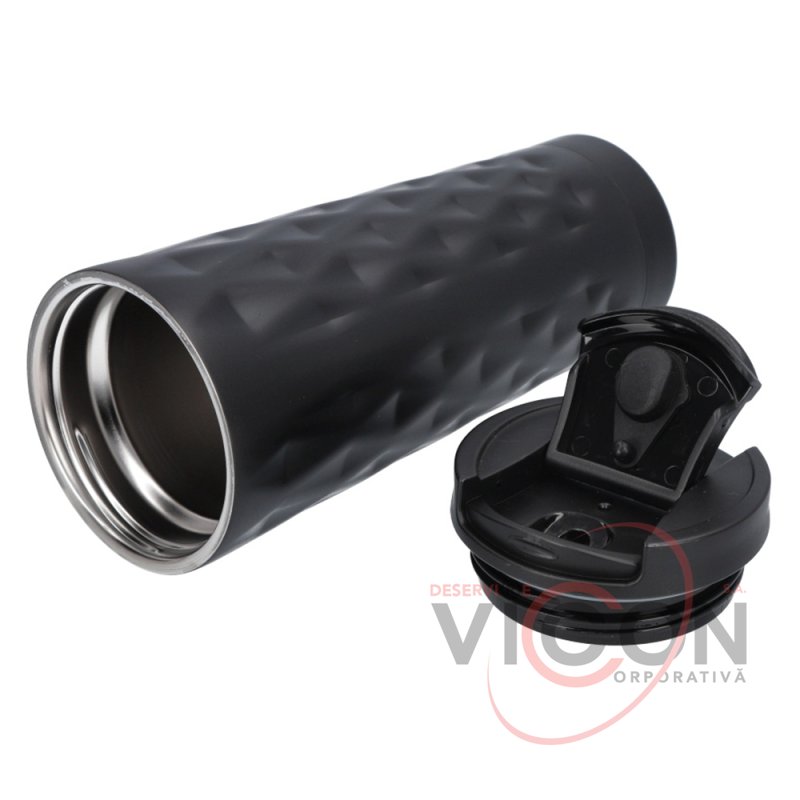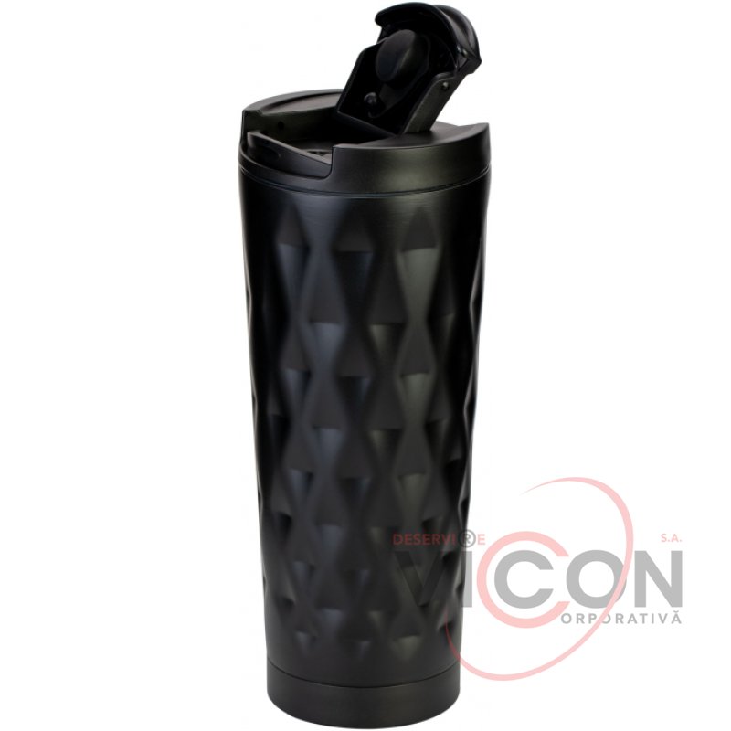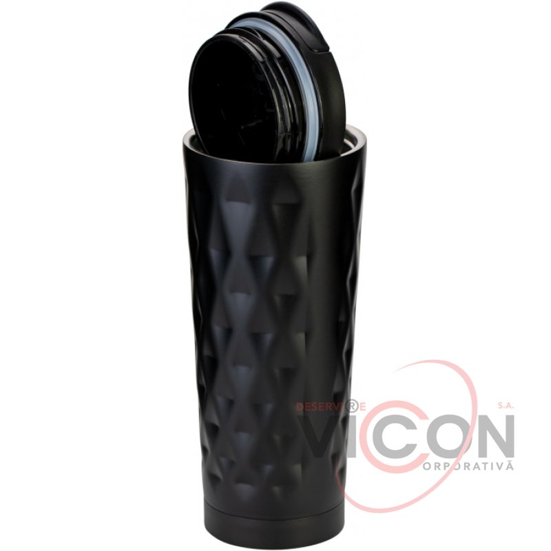 Cadou de afaceri elegant; convenabil de utilizat într-un suport pentru pahare auto; la fel de potrivită atât pentru băuturi calde, cât și pentru băuturi reci; oțel inoxidabil dublu de înaltă calitate; garnitura de cauciuc previne scurgerea lichidului și asigură păstrarea pe termen lung a temperaturii băuturii; volum 500 ml; ușurință de curățare și întreținere.