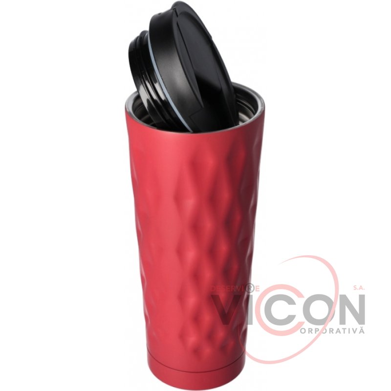 Cadou de afaceri elegant; convenabil de utilizat într-un suport pentru pahare auto; la fel de potrivită atât pentru băuturi calde, cât și pentru băuturi reci; oțel inoxidabil dublu de înaltă calitate; garnitura de cauciuc previne scurgerea lichidului și asigură păstrarea pe termen lung a temperaturii băuturii; volum 500 ml; ușurință de curățare și întreținere.