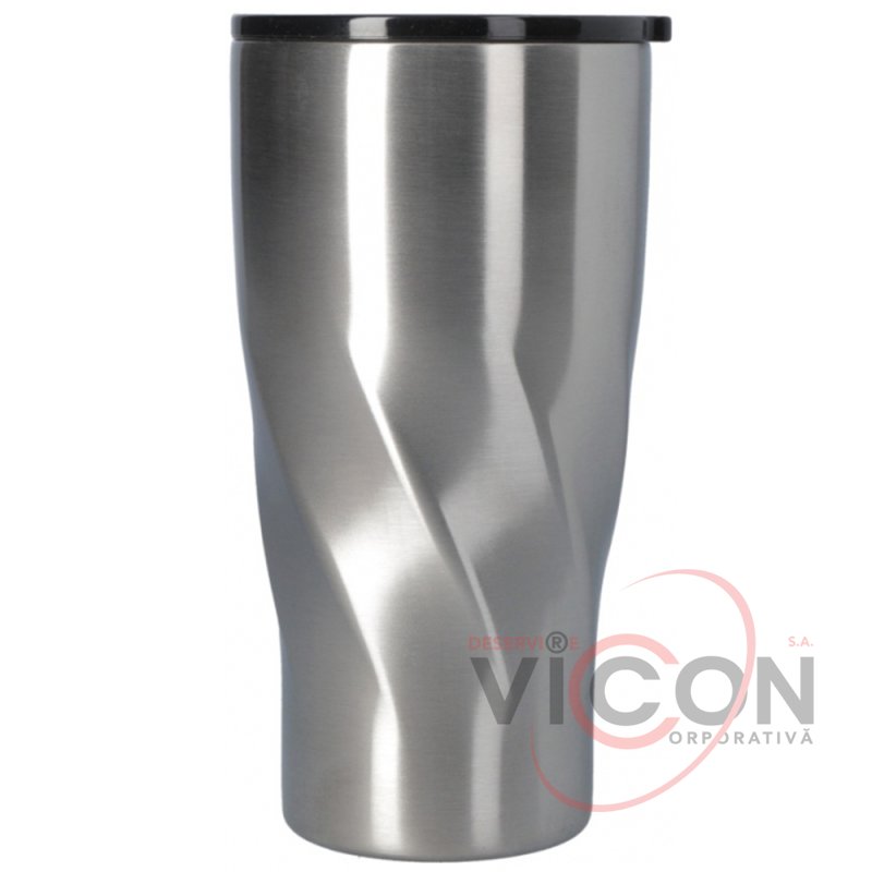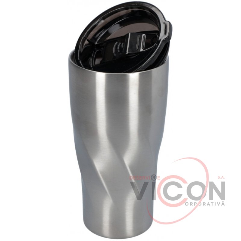 Cana termica eleganta si confortabila; la fel de potrivită atât pentru băuturi calde, cât și pentru băuturi reci; oțel inoxidabil dublu de înaltă calitate; garnitura de cauciuc previne scurgerea lichidului și asigură păstrarea pe termen lung a temperaturii băuturii; volum 590 ml; ușurință de curățare și întreținere.