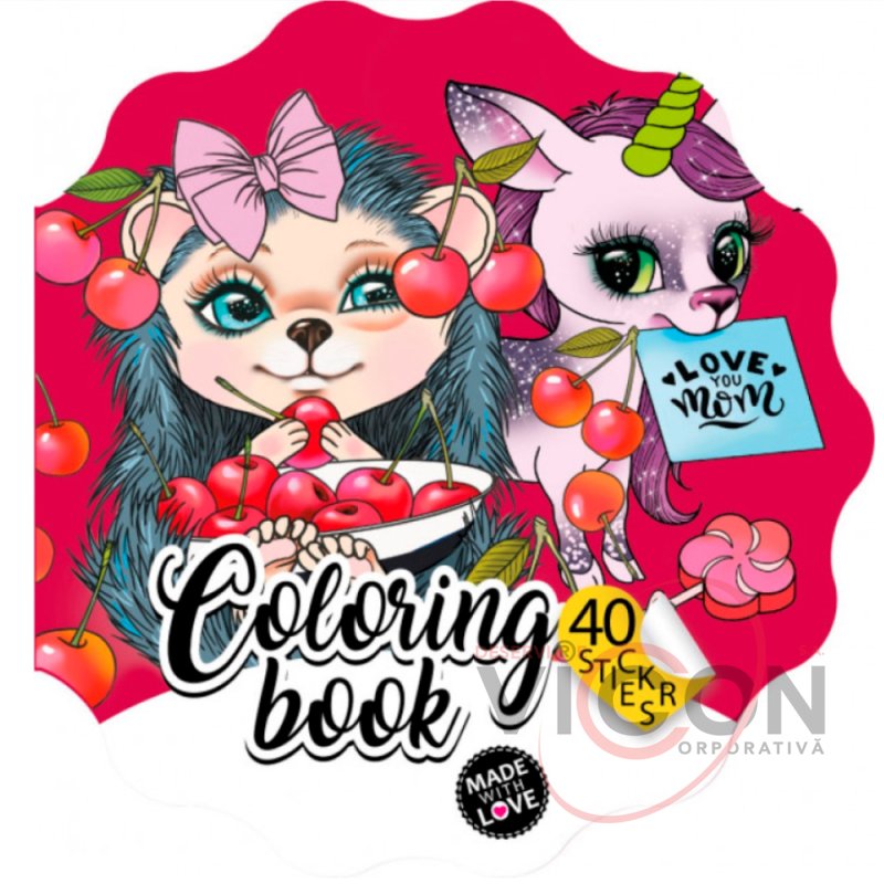 Carte de colorat cu autocolante, 200x200 mm, 4+2 foi, Love you MOM