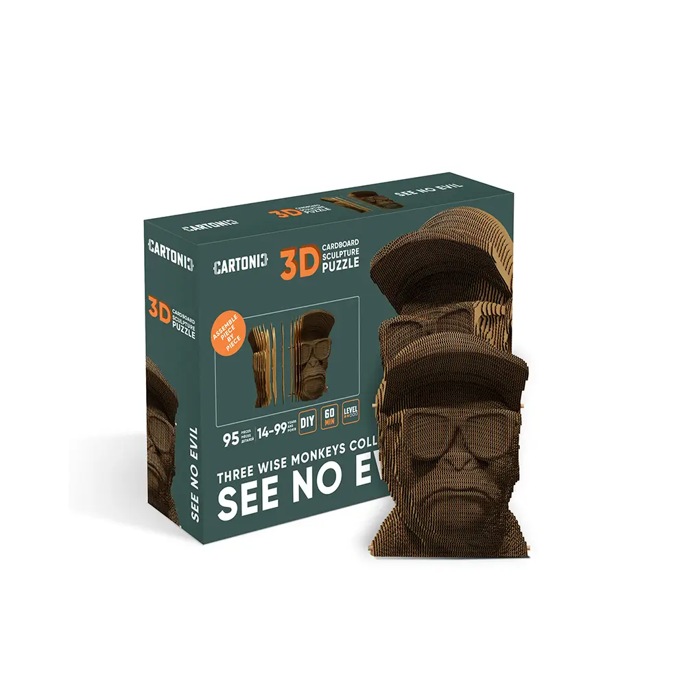 Trei maimuțe înțelepte. See No Evil este o colecție simbolică de puzzle-uri Cartonic 3D din carton cu o întorsătură modernă. Fiecare dintre cele trei maimuțe se distinge printr-un gest simbolic: una își acoperă ochii, una își acoperă gura și una își acoperă urechile. În mâinile tale se află modelul "See No Evil", care îți amintește să observi doar binele din jurul tău. Asamblați acest puzzle și colorați-l după cum doriți. Va deveni o decorație a spațiului tău și un memento periodic al unei minunate idei filosofice: să privești lumea cu bunătate și să faci binele. Cartonic - transformați cartonul într-o adevărată ARTĂ!