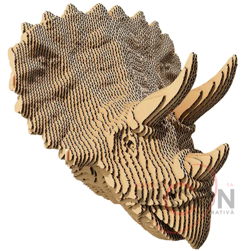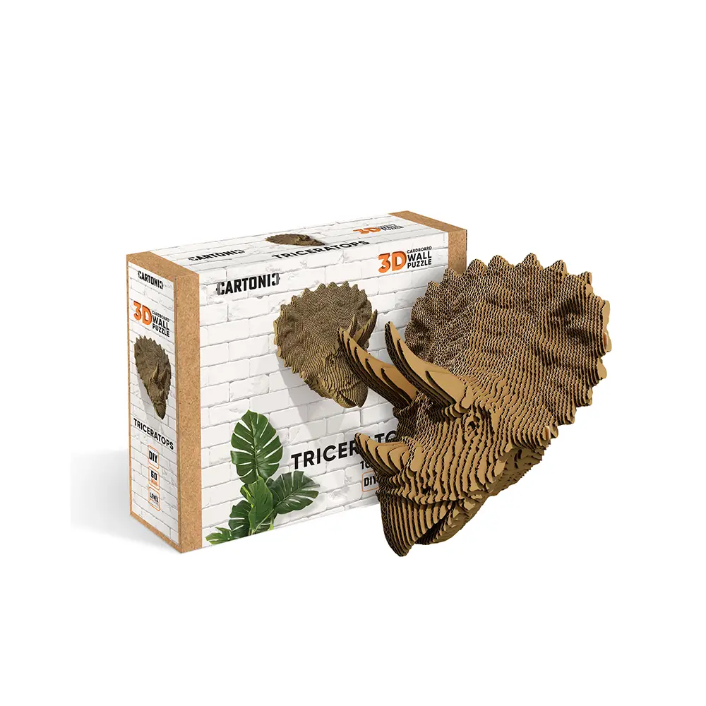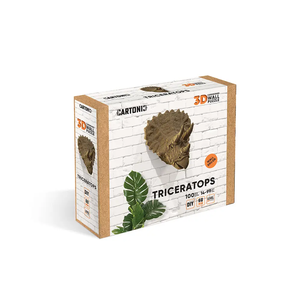 Triceratops (Triceratops) a fost unul dintre cei mai impresionanți și mai puternici amfibieni care au cutreierat cândva planeta noastră. Avea trei coarne și o piele blindată. Asamblarea acestui puternic dinozaur este o adevărată provocare, dar nu vă faceți griji! Cu puzzle-ul nostru de perete din carton Cartonic 3D, asamblarea va fi o aventură captivantă. Îți vei face propriul model de triceratops, pe care îl vei putea colora și agăța pe perete ca decor. Cartonic - transformă cartonul într-o adevărată ARTĂ!