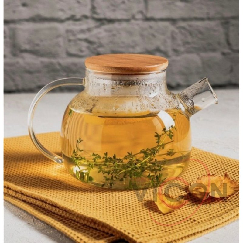Ceainic pentru infuzie cu capac din bambus 1L
