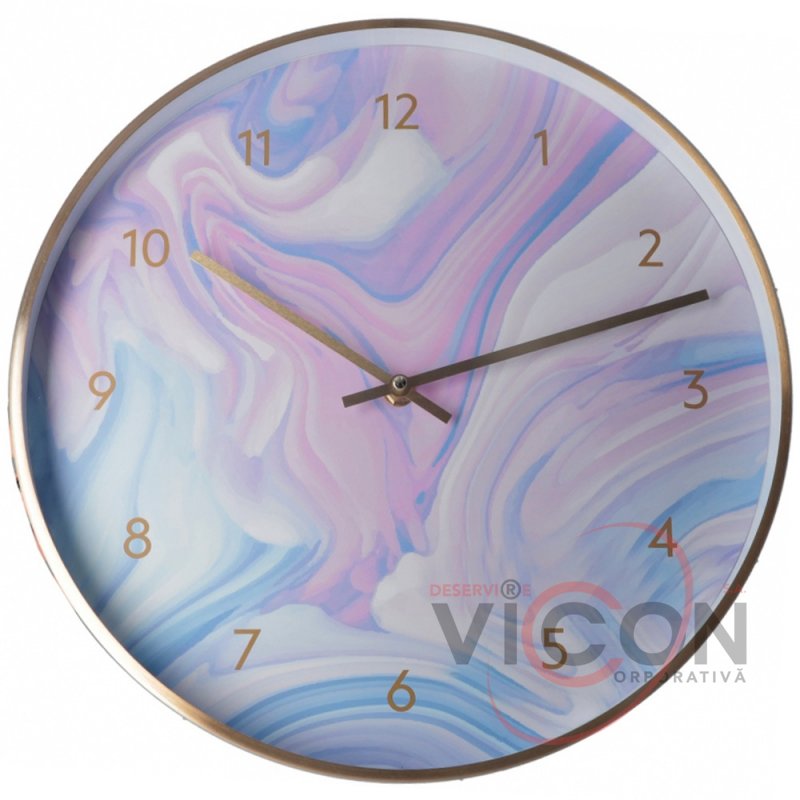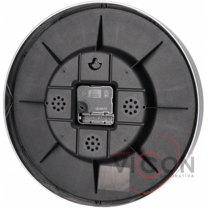 Ceas de perete; ramă din metal; cursul este standard; forma rotunda; diametru - 33 cm; tip mecanism: cuarț; baterie: baterie AA x 1 buc (bateria nu este inclusă); Datorită mecanismului convenabil, acestea sunt rapid demontate/asamblate.