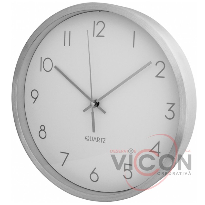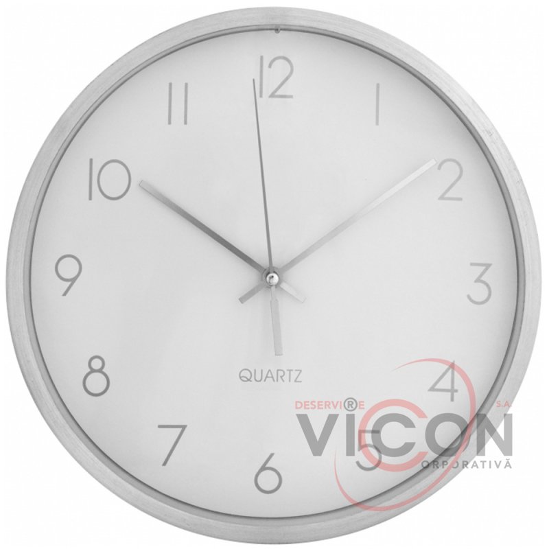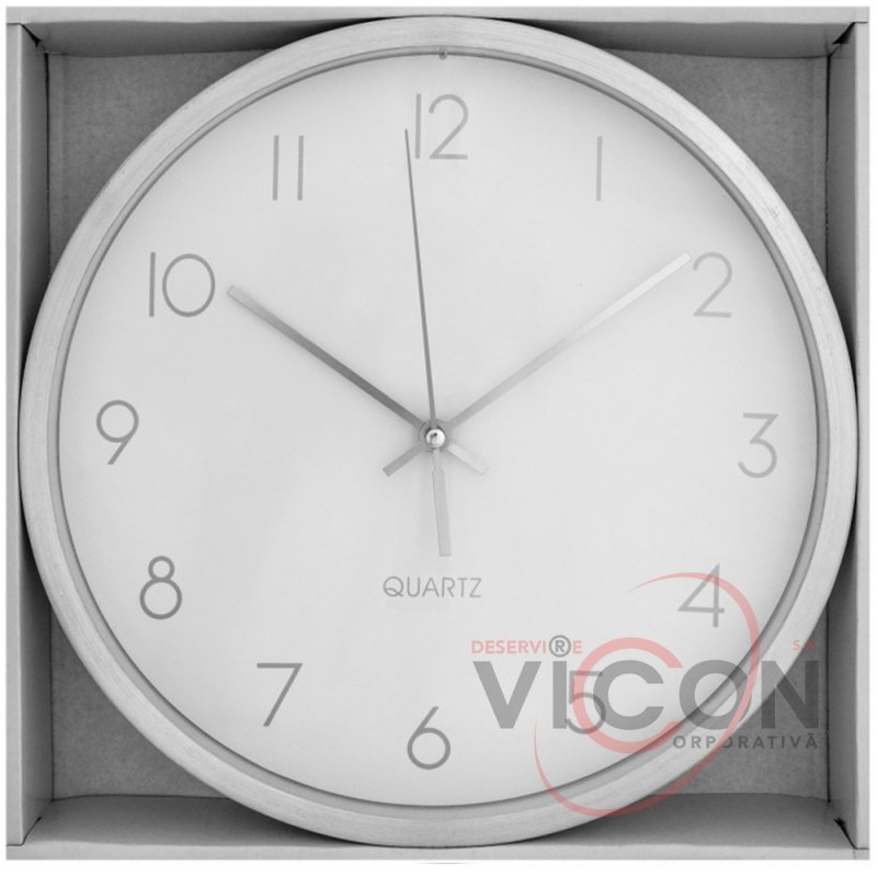 Ceas de perete; design clasic; diametru - 25,2 cm; corpul metalic adaugă eleganță; tip mecanism: cuarț; baterie: baterie AA x 1 buc (bateria nu este inclusă în pachet); datorită unui mecanism convenabil, acestea sunt rapid demontate / asamblate.