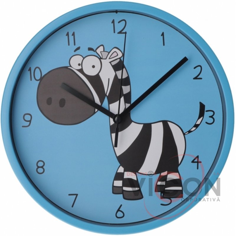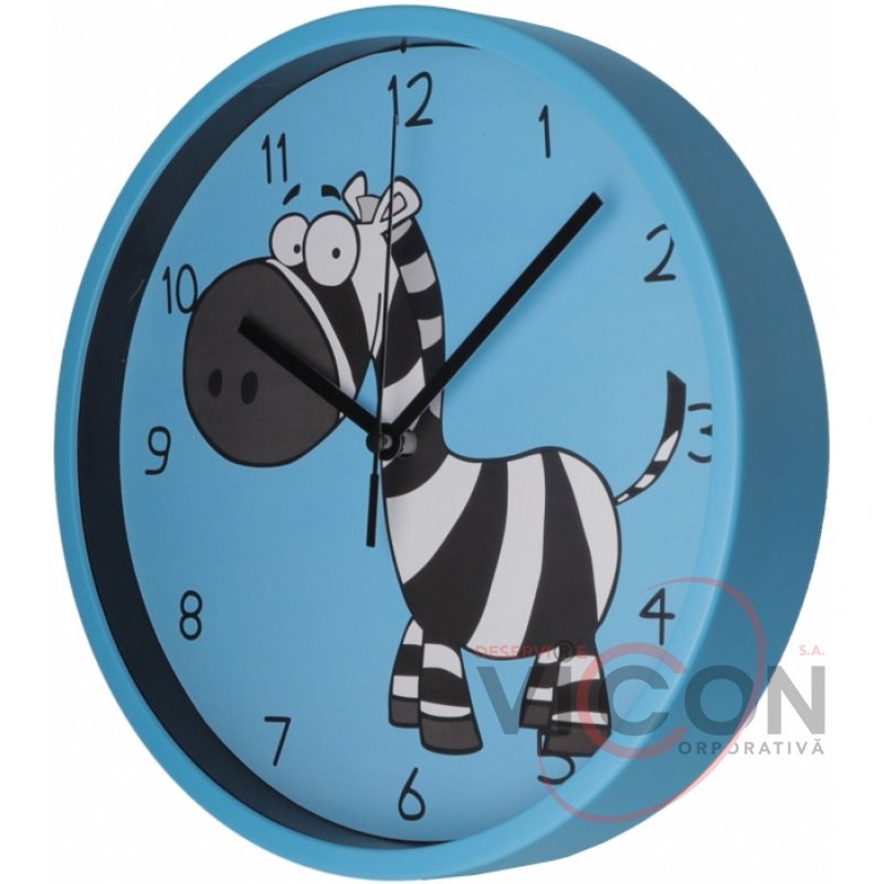 Ceas de perete din plastic Optima LITTLE ZEBRA, albastru