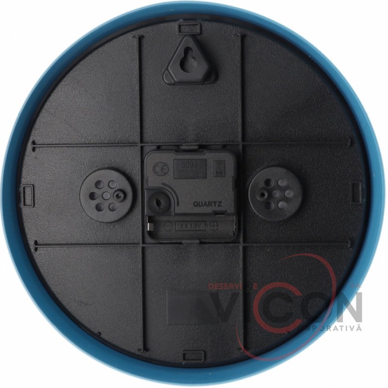 Ceas de perete; Cutie de plastic; cursul este standard; forma rotunda; diametru - 22,5 cm; tip mecanism: cuarț; baterie: baterie AA x 1 buc (bateria nu este inclusă); Datorită mecanismului convenabil, acestea sunt rapid demontate/asamblate.