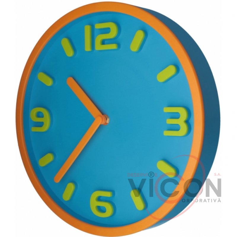 Ceas de perete; cutie de plastic; cursul est standard; forma rotondă; diametru - 30 cm; tip mecanism: cuarț; baterie: baterie AA x 1 buc (bateria nu este inclusă); Datorita mecanismului convenabil, acestea sunt rapid demontate/asamblate.
