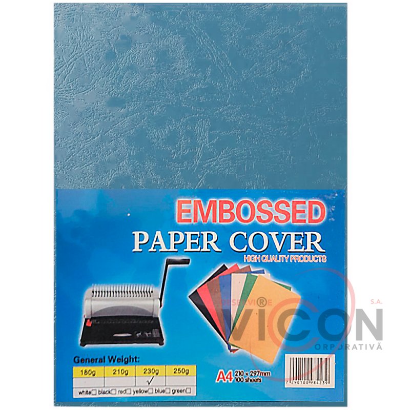 Coperta broșurare, imitatie piele albastru, A4 230 gr/m2, 100 foi