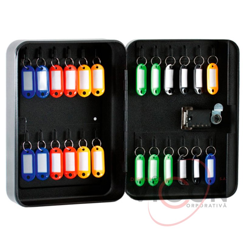 Cutia de chei cu brelouri de la BUROMAX este o soluție excelentă pentru depozitarea cheilor la recepție, în camera de securitate, zona recepției și în alte spații. Fiecare cheie are propriul loc, ceea ce facilitează găsirea cheii necesare.
