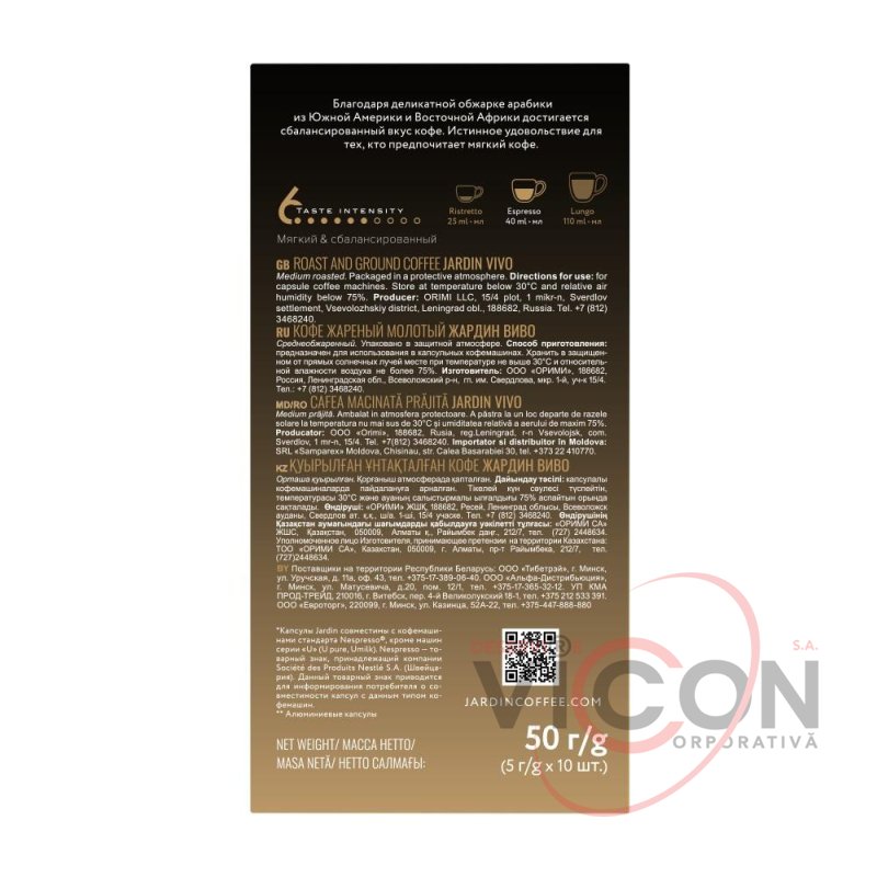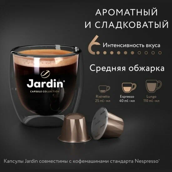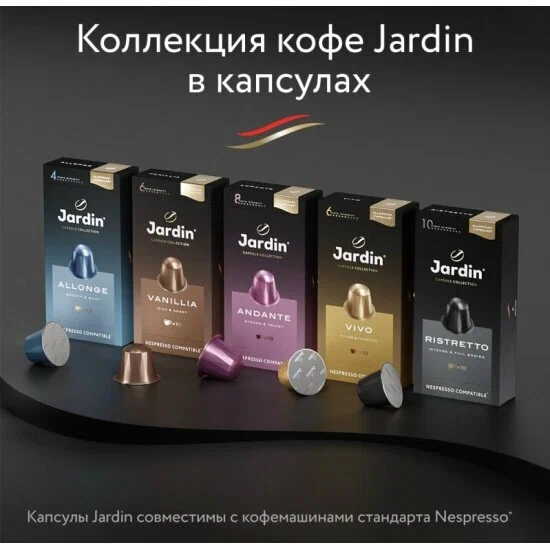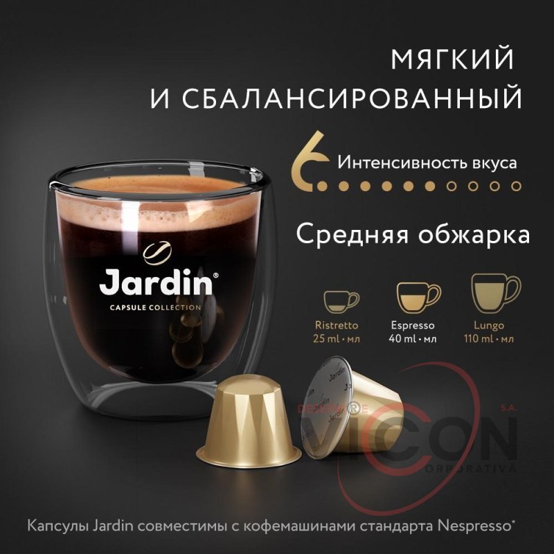 Jardin - Marca de cafea Jardin a apărut pe piață în 2007. Produsele sunt fabricate de compania rusă Orimi Trade, care este un reprezentant al fabricii suedeze Jardin Cafe Solution S.A. Toate băuturile sub această marcă includ exclusiv arabica, fără impurități de Robusta. Sortimentul include atât cafea boabe și măcinată, cât și cafea liofilizată solubilă rapid și capsule pentru aparatele de cafea.