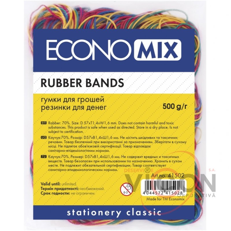 Benzi de cauciuc pentru bani TM Economix 500g. Benzile de cauciuc pentru bani sunt realizate din cauciuc de înaltă calitate, cu diametrul de 48 mm.