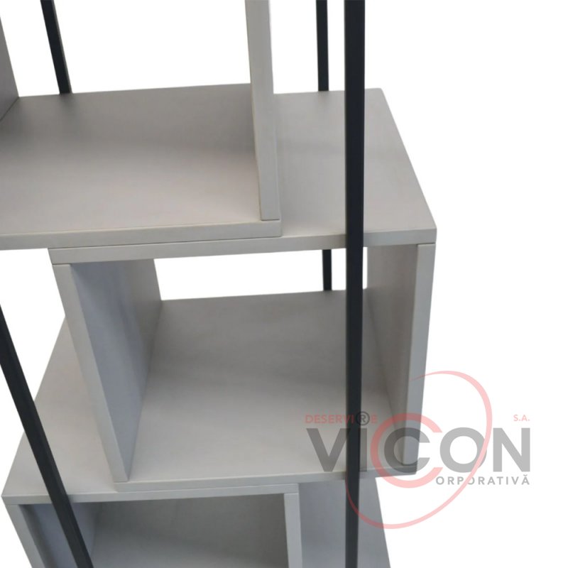 Acest raft dispune de 4 polițe deschise pentru păstrarea bunurilor și materialelor precum cartușe, cerneală, hârtie și accesorii birotică.