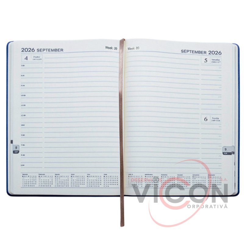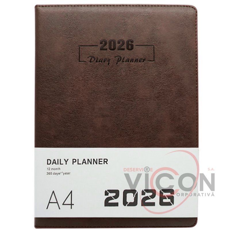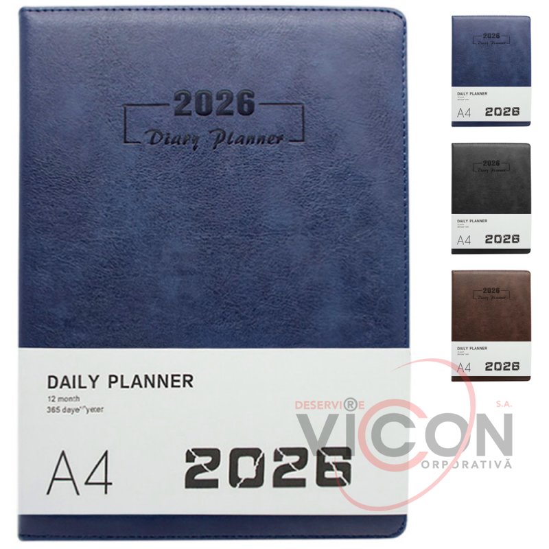 Agendă format A4 cu copertă rigidă din piele ecologică — alegerea ideală pentru organizarea zilei de lucru, întâlnirilor, sarcinilor și notițelor personale. Caracteristici: Format: A4 Număr de pagini: 344 (172 file) Hârtie: offset, 80 g/m² Copertă: rigidă, piele ecologică Culoare hârtie: fildeș (Ivory) Avantaje: Hârtia de culoare „ivory” este plăcută pentru ochi și potrivită pentru scrisul cu orice tip de stilou. Coperta rigidă protejează paginile împotriva deteriorării. Ideală atât pentru uz personal, cât și ca un cadou corporativ elegant.