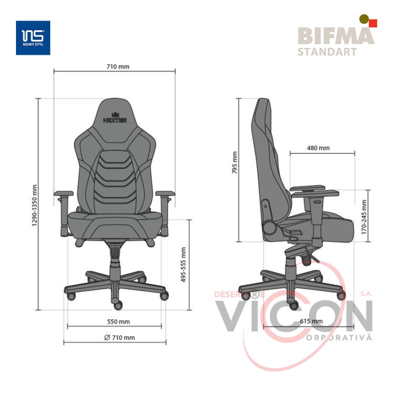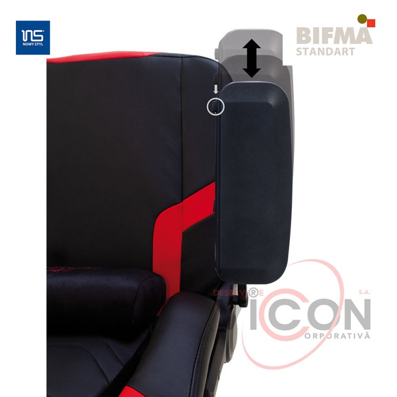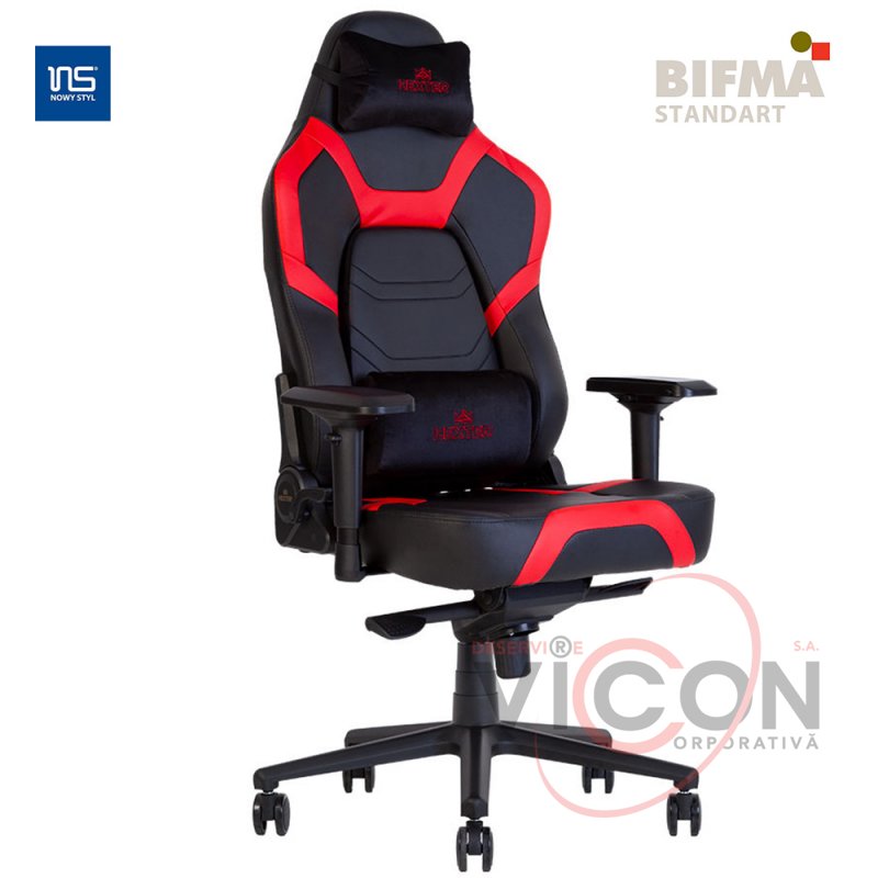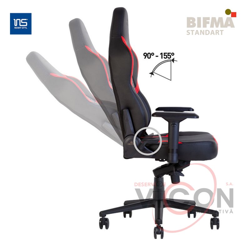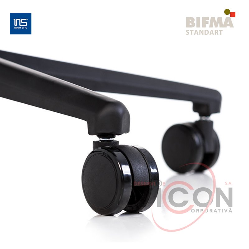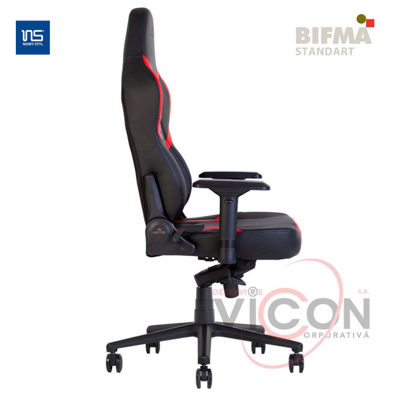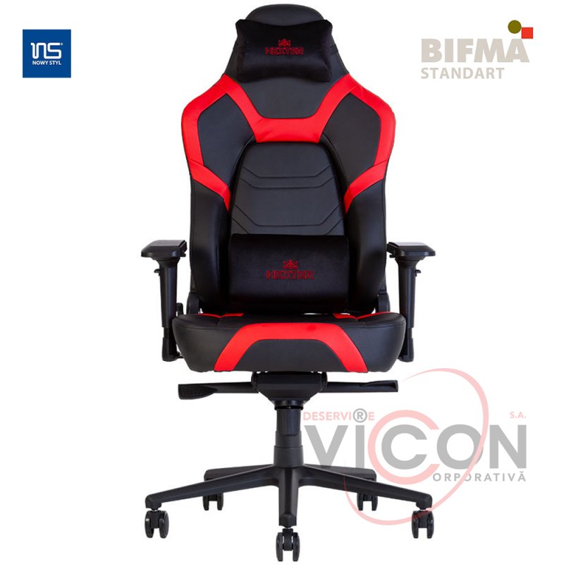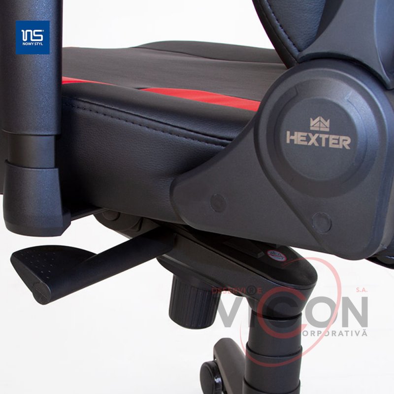 HEXTER XR - serie de fotolii performante de la compania NowyStyl. Modelul XR este dotat cu cotiere 4D cu acoperire lata din poliuretan, cu reglare tridimensionala in jurul axei sale si in inaltime. Baza din otel de culoare neagra mat, gaslift-ul cu nivel de rezistenta 4. Rotilele siliconate cu diametrul extra-standart 65 mm. Mecanismul multiblock si posibilitatea de inclinare a spatarului la 180 grade. In complect sunt incluse doua pernute pentru vertebrele gitului si briului. Fotoliu corespunde standartele BIFMA.
