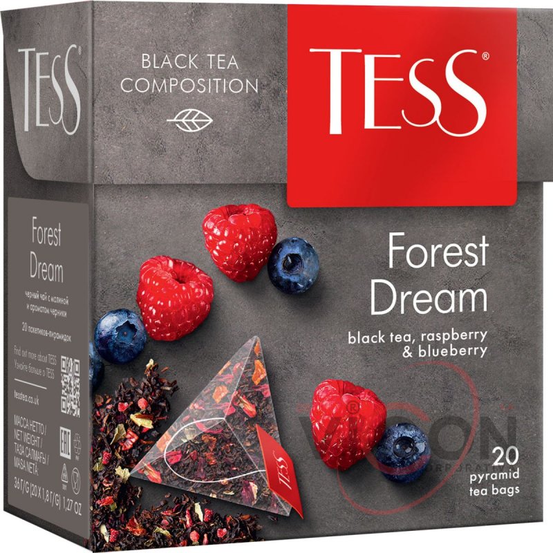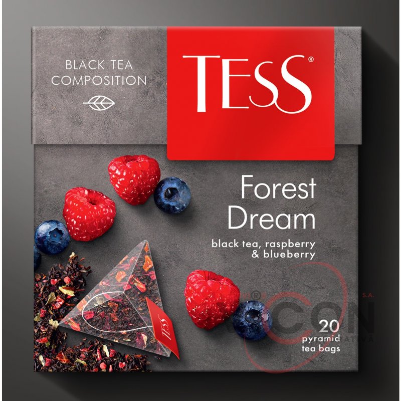 Gustul răcoritor al amestecului Tess Forest Dream atrage atenția prin aroma sa unică de fructe de pădure. Felii de mure coapte și zmeură se adaugă la ceaiul negru. Postgustul delicat lasă un gust rece de pădure de vară. Buchetul minunat nu posedă astringența caracteristică soiurilor negre.