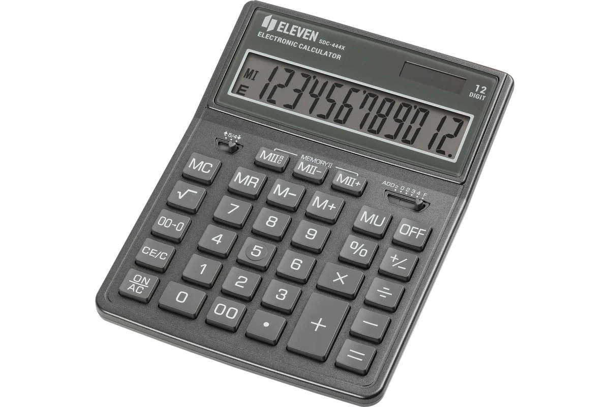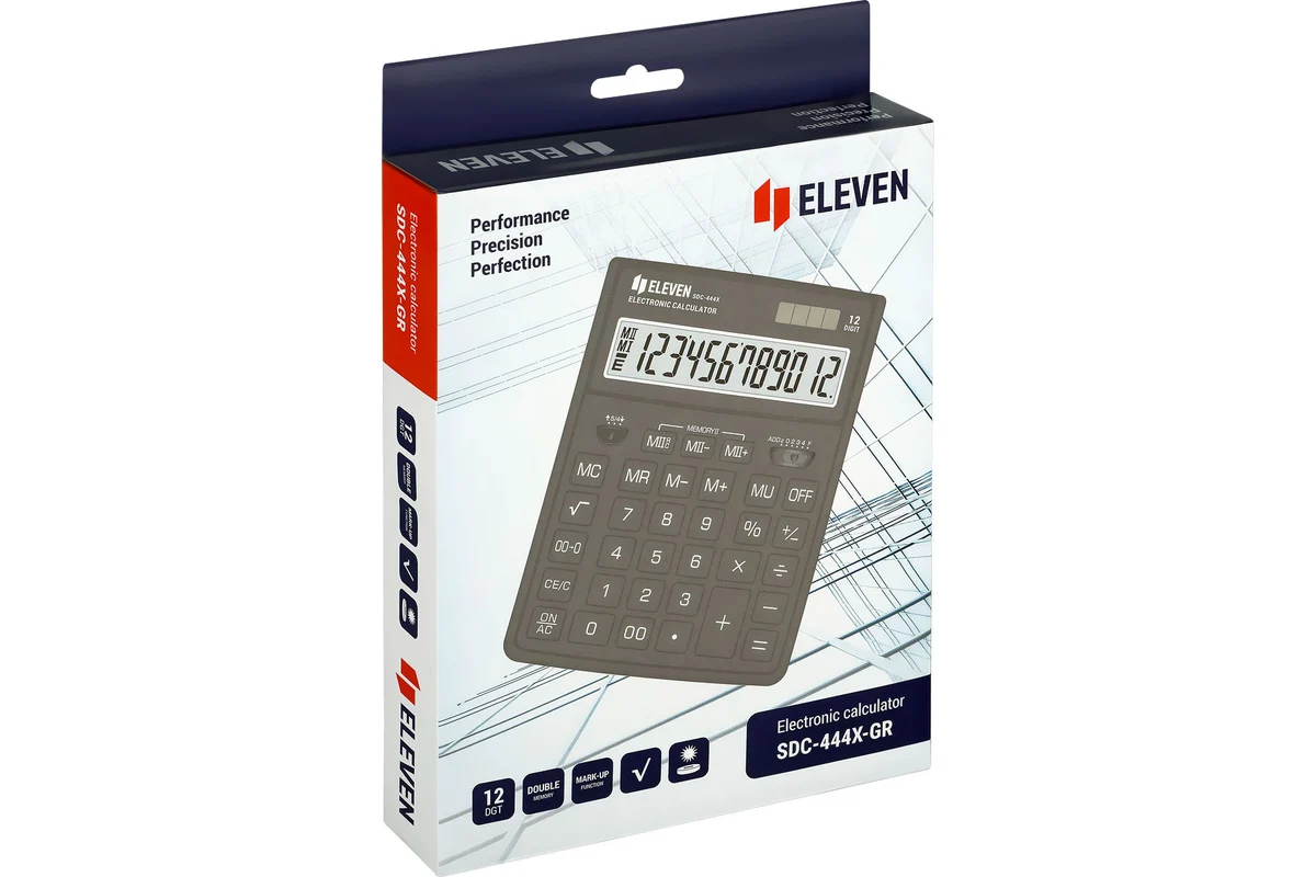 Calculator de birou Eleven SDC-444X-GR, 12 cifre, dual power, 155x204x33 mm, gri