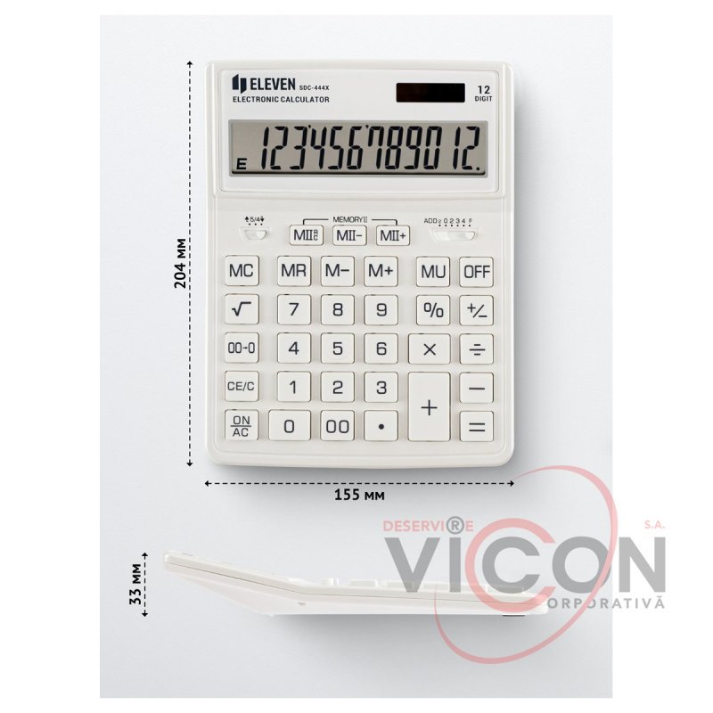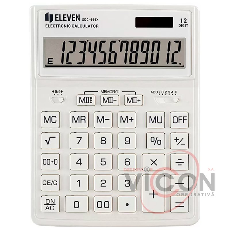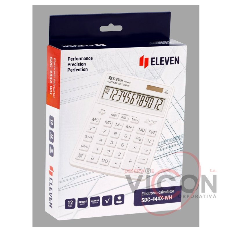 Calculator de birou Eleven SDC-444X-WH, 12 cifre, dual power, 155×204×33mm, alb
