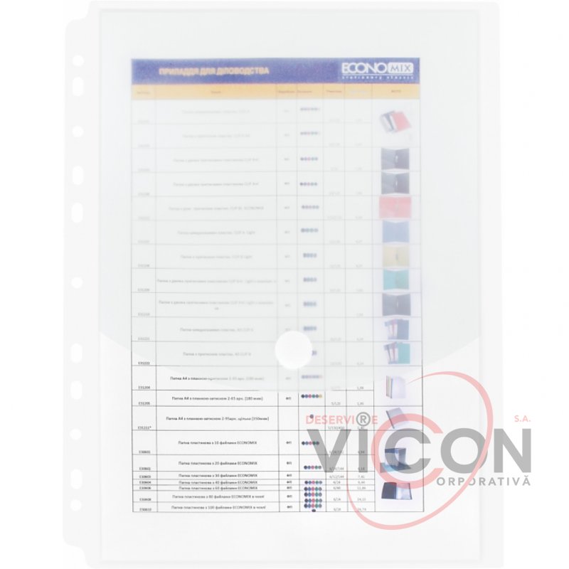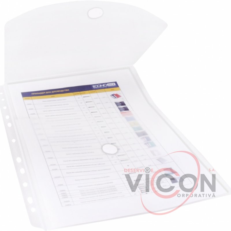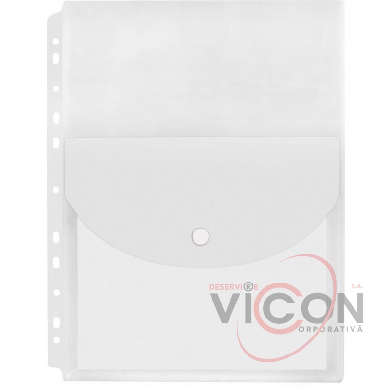 Plic transparent A4 cu închidere adezivă și perforație laterală, vertical