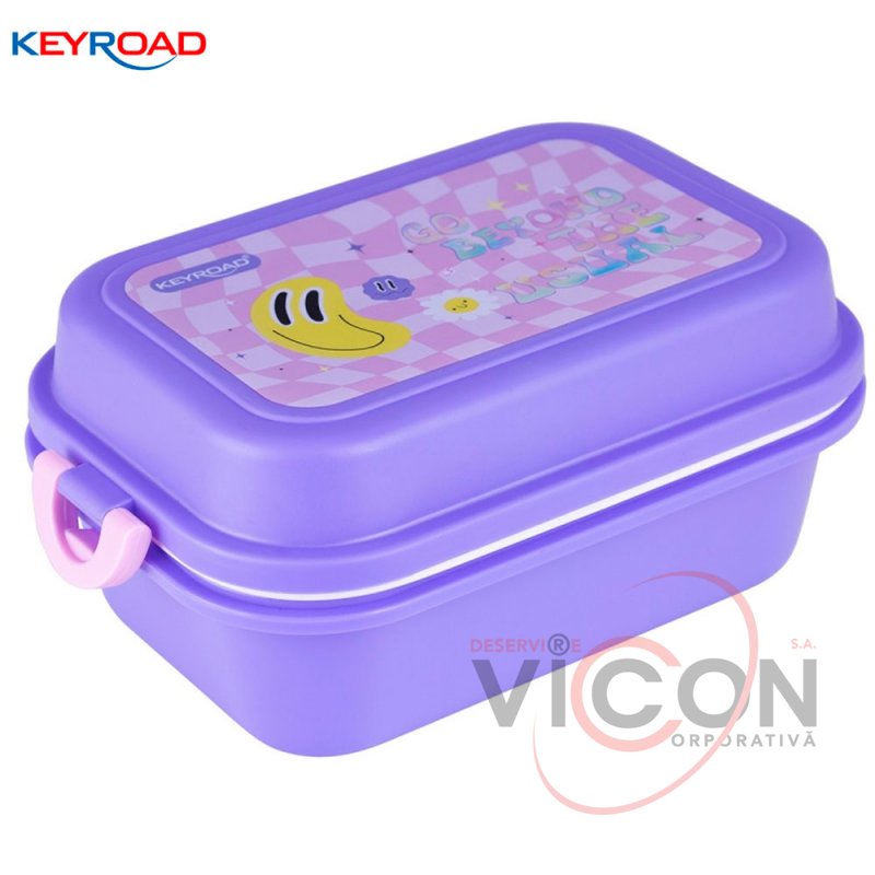 Vremea pungilor de plastic a trecut! Containerul cu două niveluri pentru snacks-uri, fabricat din polipropilenă de înaltă calitate, asigură depozitarea și transportul în siguranță al produselor. Este prevăzut cu două închizători de culoare violet, cu un design feminin.