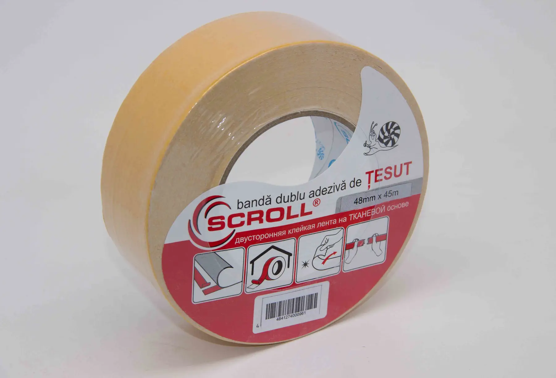 Banda adezivă de înaltă calitate pe bază de textil pentru instalarea pe termen lung a tuturor tipurilor de covoare pe orice suprafață orizontală, inclusiv pe cele foarte dure și neuniforme.