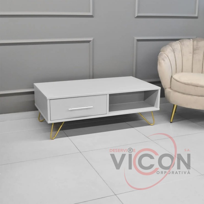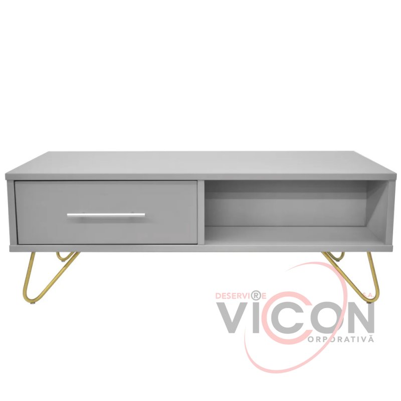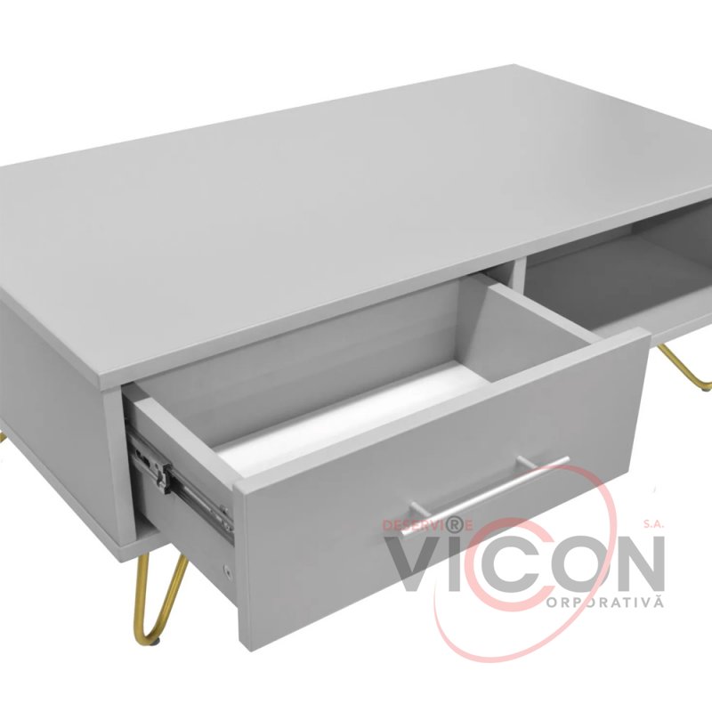 Măsuță cafea MIA GREY/GOLD cu 2 sertare
