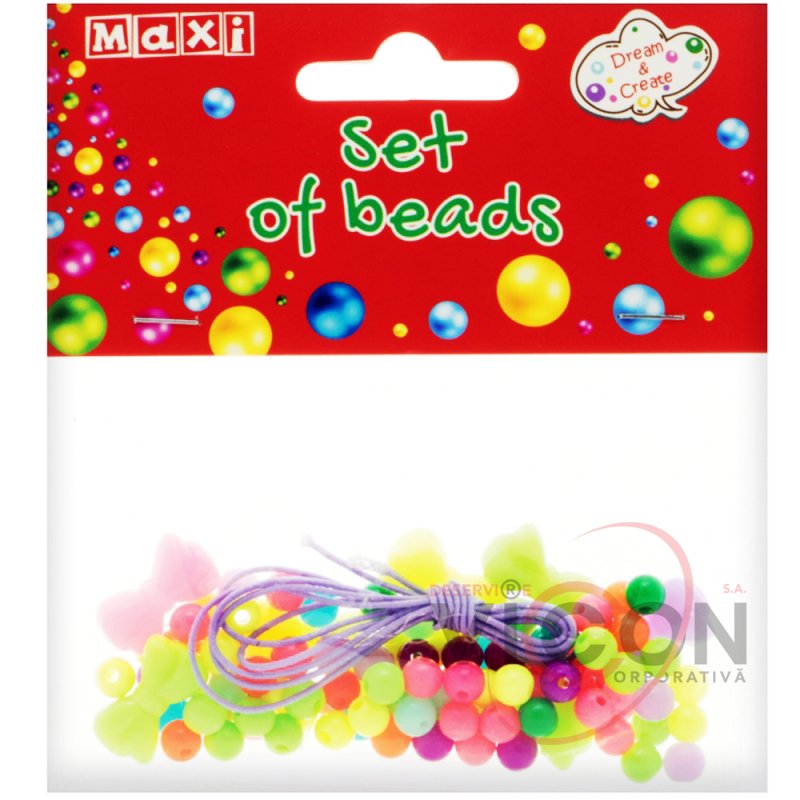 Setul include perle de diferite cantități și forme, precum și o bandă elastică colorată de 1 m lungime pentru a crea imediat o podoabă.