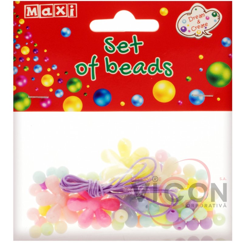 Setul include perle de diferite cantități și forme, precum și o bandă elastică colorată de 1 m lungime pentru a crea imediat o podoabă.