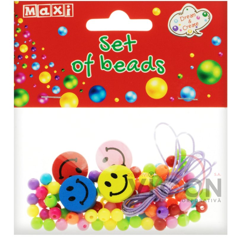 Setul include perle de diferite cantități și forme, precum și o bandă elastică colorată de 1 m lungime pentru a crea imediat o podoabă.