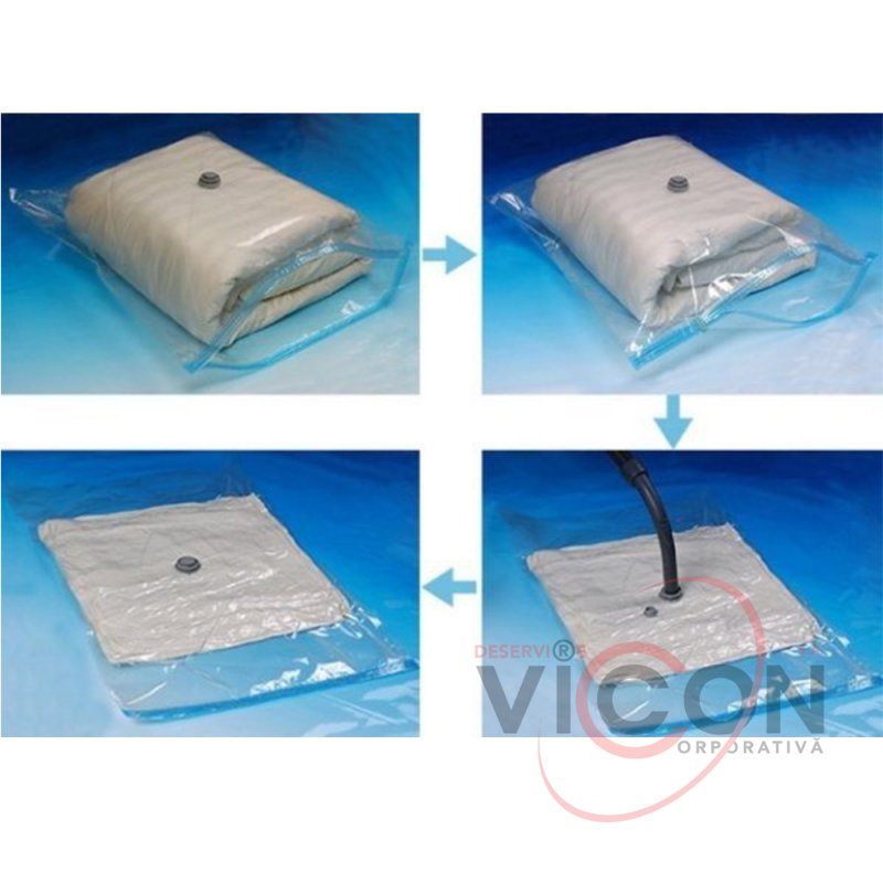 Pungi de vid VACUUM BAG sunt concepute pentru a stoca lucruri, vă vor ajuta să economisiți până la 75% din spațiul din dulap. Perne, jachete, pături, pulovere și multe altele nu vor mai ocupa întregul spațiu al dulapului tău. Durează doar 30 de secunde pentru a rezolva problema stocării lucrurilor o dată pentru totdeauna. Acum, fiecare dintre lucrurile va ocupa puțin mai mult spațiu decât oricare dintre tricourile tale. Nu vă veți gândi unde să puneți pătura.