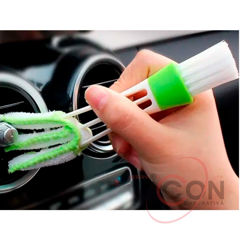 Peria de curățare este ideală pentru curățarea zonelor greu accesibile, cum ar fi gurile de ventilație, suporturile pentru pahare și îmbinările bordului. Perii moi curăță delicat și rapid praful de pe orice suprafață. Pe partea opusă este fixată o lavetă din microfibră, care îndepărtează eficient și delicat murdăria de pe componentele interiorului mașinii.