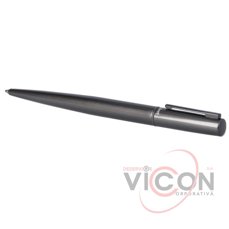 Pix cu mecanism de răsucire; tija - tip PARKER; scrie cu albastru; lungime maner 14 cm; corpul metalic lucios face stiloul deosebit de elegant; vine cu o cutie cadou.