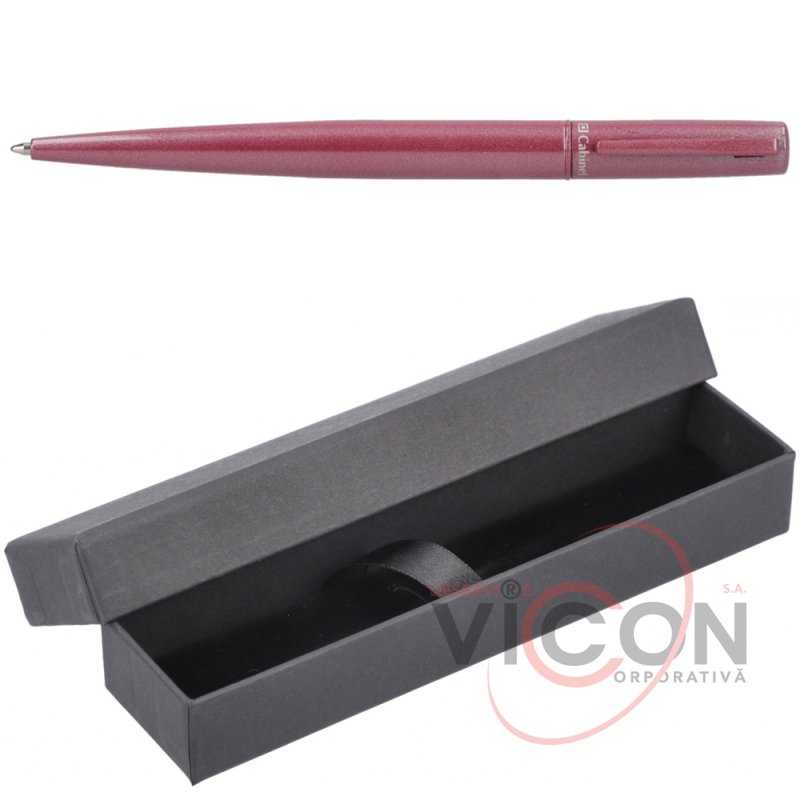 Pix cu mecanism de răsucire; tija - tip PARKER; scrie cu albastru; lungime maner 14 cm; corpul metalic lucios de culoare roșie face stiloul deosebit de elegant; vine cu o cutie cadou.