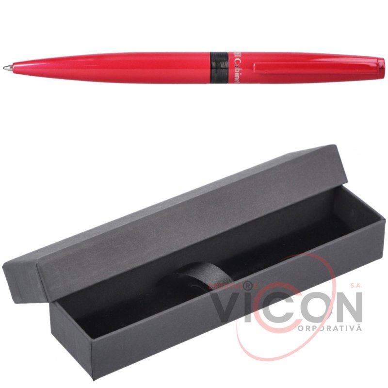Pix cu mecanism de răsucire; tija - tip PARKER; scrie cu albastru; lungime maner 14 cm; Corpul metalic lucios de culoare roșie face stiloul mai atractiv; vine cu o cutie cadou.