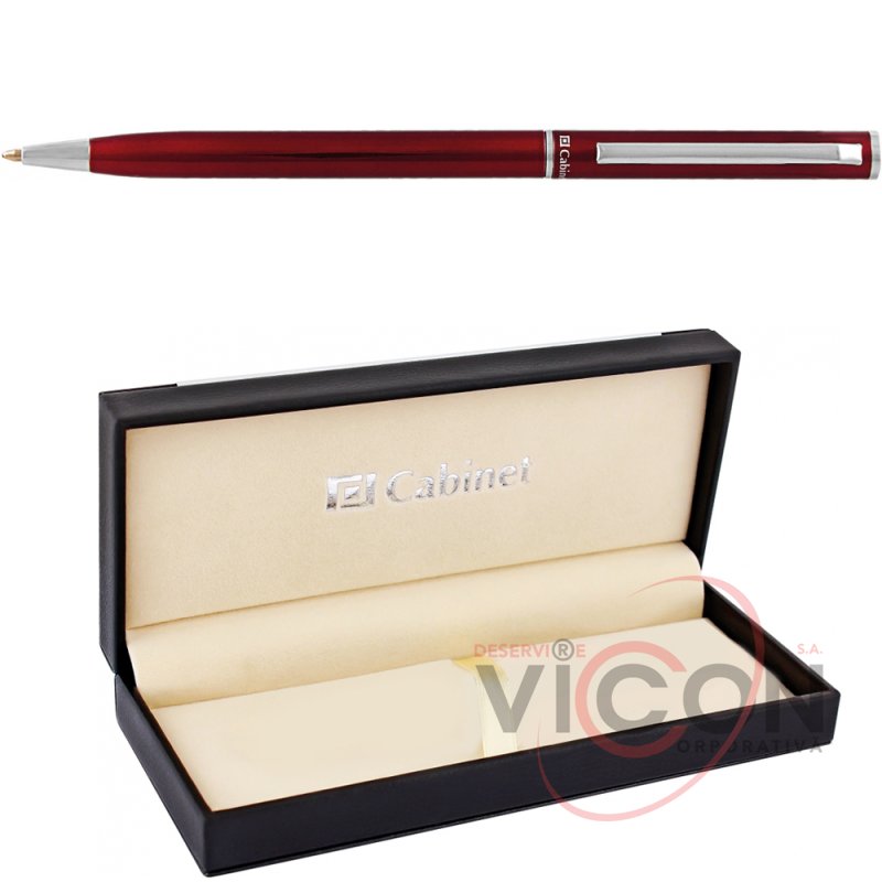 Pix cu mecanism de răsucire; tija - tip CROSS; scrie cu albastru; lungime maner 13 cm; Corpul metalic rosu cu detalii argintii face stiloul deosebit de elegant; vine cu o cutie cadou.