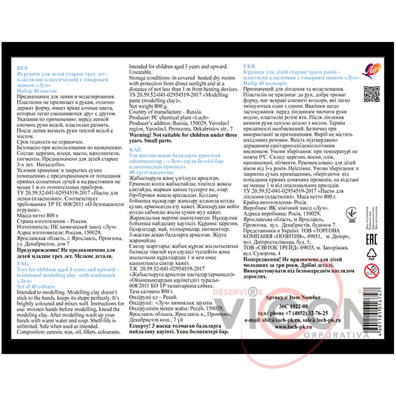 - Sigur pentru copii (siguranța produsului este garantată prin inspecții periodice pentru conformitatea cu cerințele de siguranță ale legislației ruse, cerințele Uniunii Vamale și cerințele de siguranță ale standardelor UE armonizate).