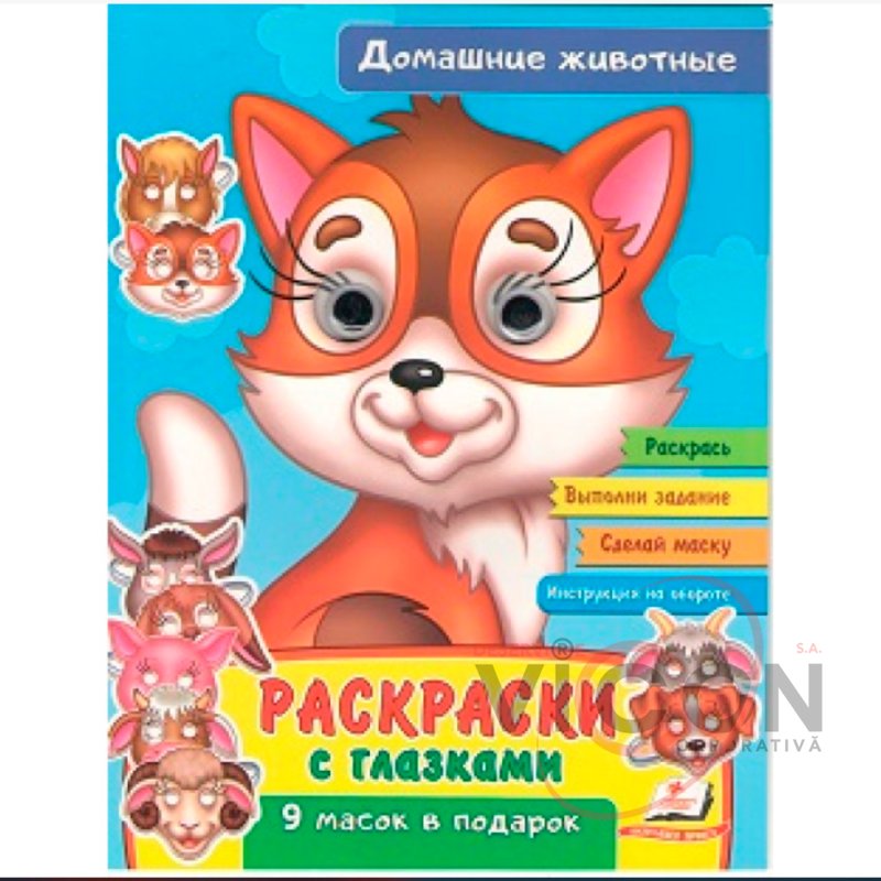 Раскаски с глазками. Домашние животные. 9 масок