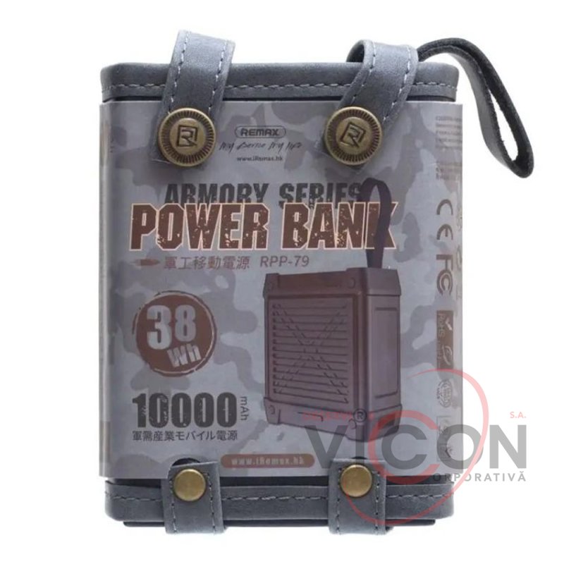 Cutia de alimentare portabilă Remax Armory RPP-79 10000mAh este un accesoriu elegant, de dimensiuni mici, pentru utilizarea zilnică.