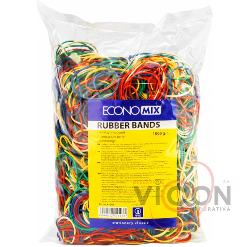 Elastic de cauciuc pentru bani TM Economix 1000g, culoare asortată.