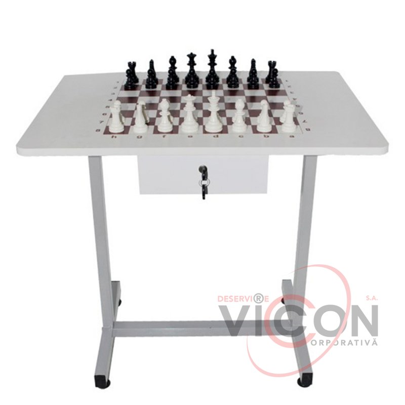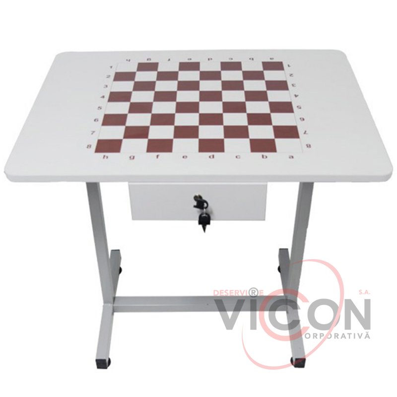 Masă de șah cu picioare metalice (60x80 cm) — o alegere practică și elegantă pentru pasionații de șah.