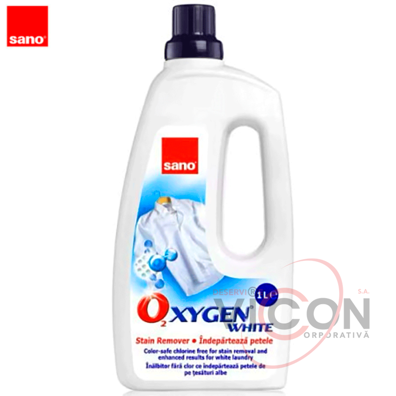 Sano Oxygen White este un gel de albire fără clor care îndepărtează petele persistente și îmbunătățește rezultatele spălării pe alb. Ideal pentru tratarea prealabilă a petelor de pe gulere și manșete.