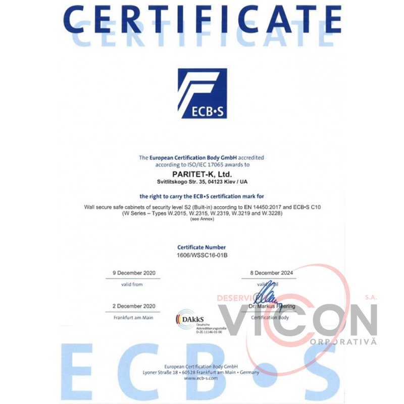 Certificat de rezistenta la efractie: clasa S2 conform DSTU EN 14450